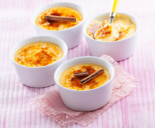 Retire do lume, elimine as cascas, distribua por tacinhas e deixe arrefecer. Na hora de servir, polvilhe com açúcar e queime a superfície com um ferro próprio ou maçarico de cozinha.